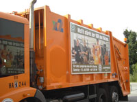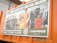 Anlässlich der Love Parade wurden 15 Fahrzeuge der BSR umbeschriftet.