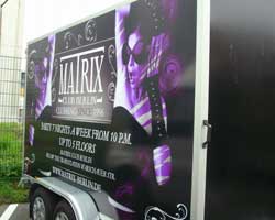 Die Beschriftung fand an 3 Standorten statt und dauerte 2 Tage. Fläche des jeweiligen Digitaldrucks 3 x 1,50 m