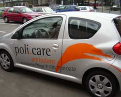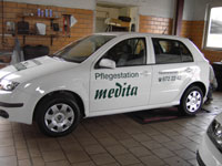 Fahrzeugflotte für medita mit einfarbiger Fahrzeugfolie.