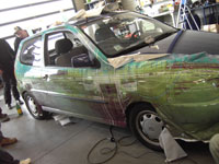 Fahrzeugvollverklebung für einen VW Polo, Hier erfolgte die Beschriftung im 6C Digitaldruck + Schutzlaminat